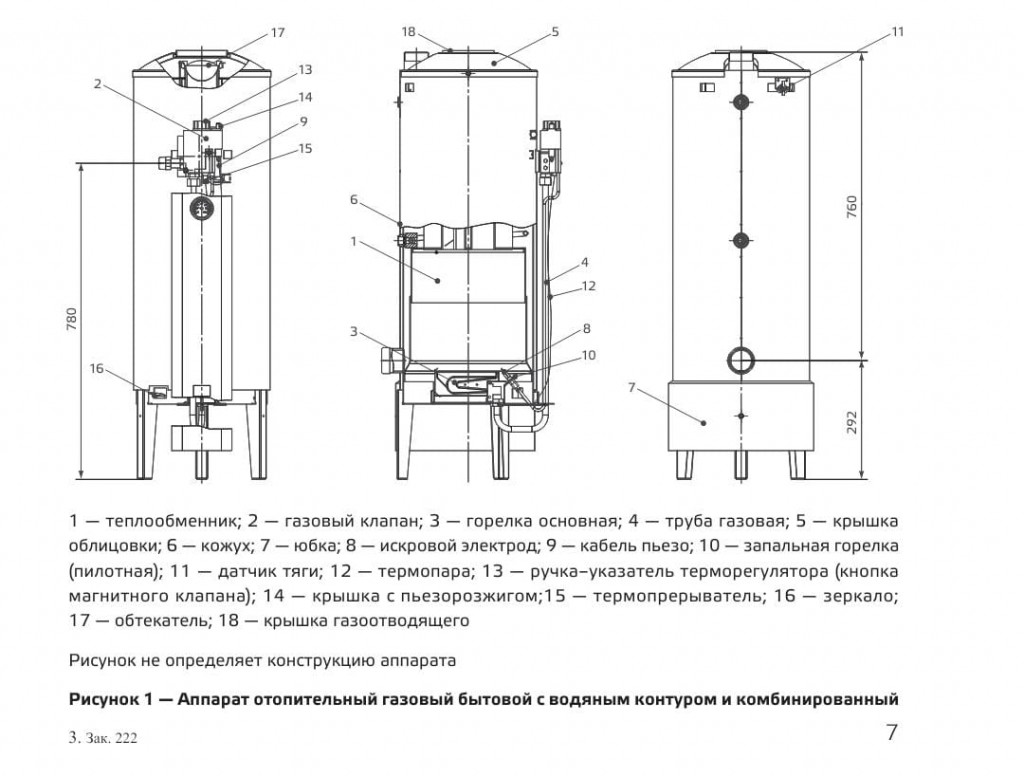 П р и м е ч а н и е — В начальной стадии эксплуатации аппарата при запуске могут появиться капли воды из-под днища теплообменника — это результат конденсации водяных паров. При прогреве всей системы отопления образование конденсата прекратится.